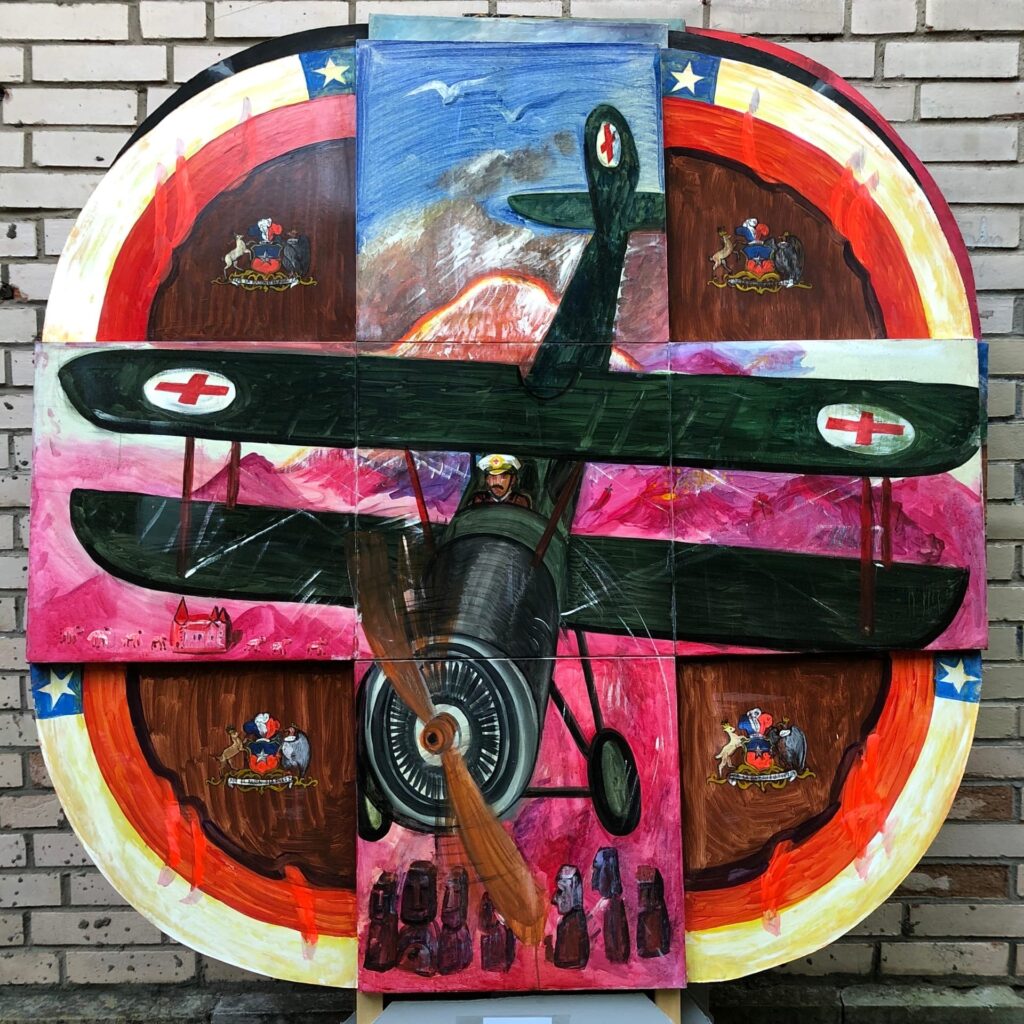 Формат полиптихов оригинален и не имеет аналогов, это сборная модульная конструкция, в основе которой крест 1,5 на 1,5 метра (холст, масло) и пространство между крестом в другом материале, содержащее флаг и герб соответствующей страны. Такой уникальный формат позволяет не просто экспонировать живопись на плоской стене, но выстраивать объемные конструкции.