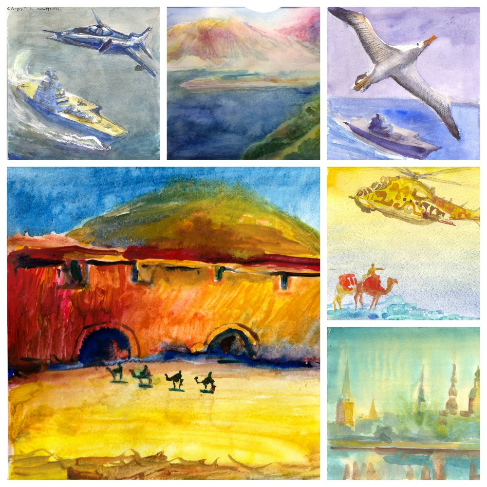 Тем более ценны для зрителя эти небольшие кусочки бумаги, по его собственному выражению «малюськи», где есть весь мир художника Сергея Опульса: и горы, и вертолеты Афганской войны «крокодилы», и море Севера, и любимые островные монастыри Северо-Запада.